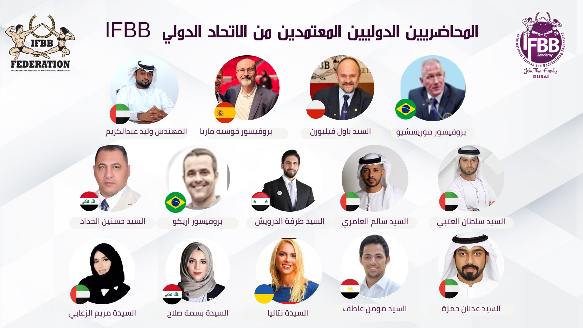 اختتمت بنجاح دورة المستوى الثامن لمدربي بناء الأجسام واللياقة البدنية التي نظمتها أكاديمية IFBB بدبي والتي أقيمت لمدة 3 أيام بنظام الاتصال المرئي عن بعد وشهدت مشاركة مميزة من قبل المدربين والمهتمين بشؤون رياضة بناء الأجسام واللياقة البدنية.