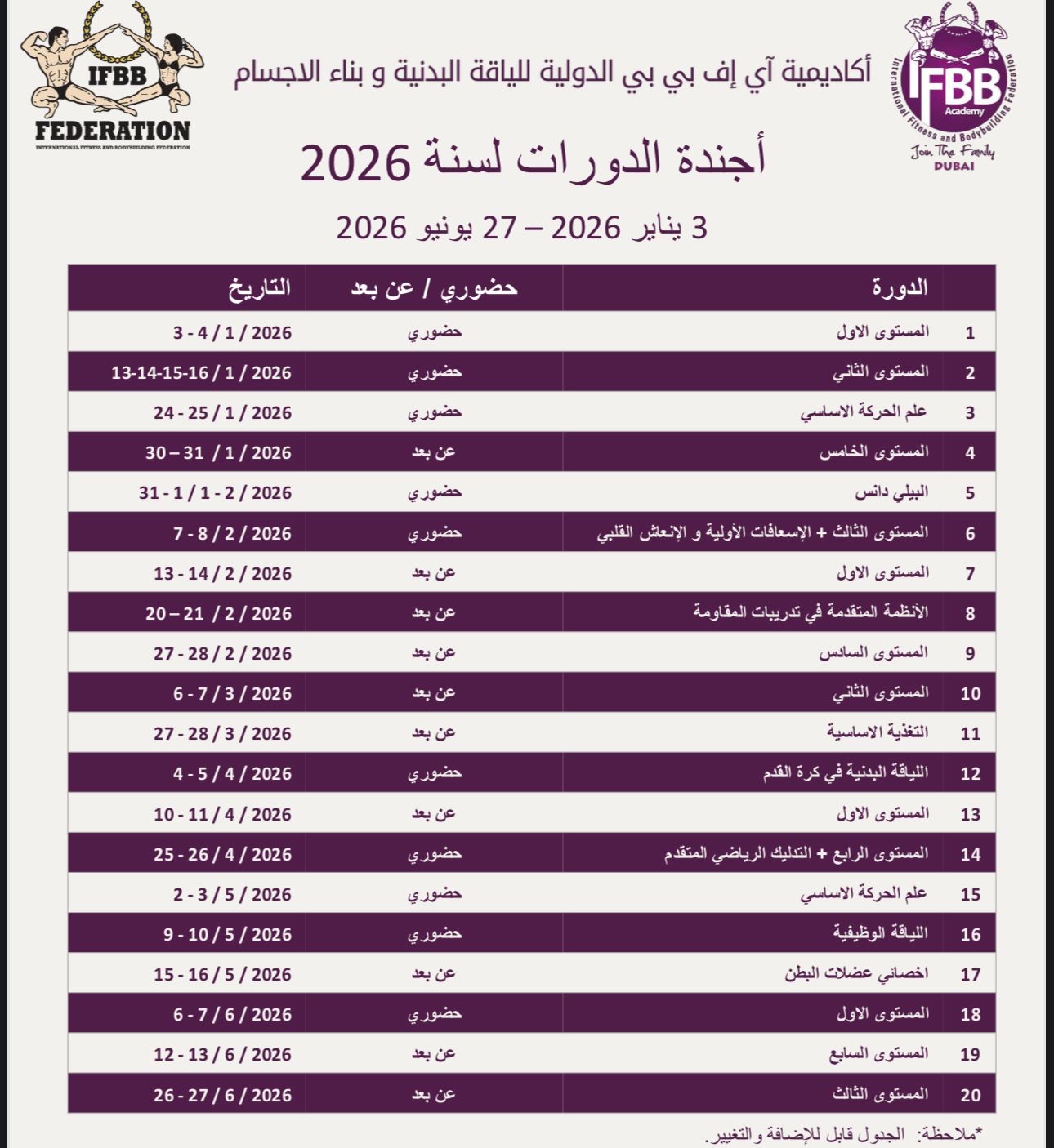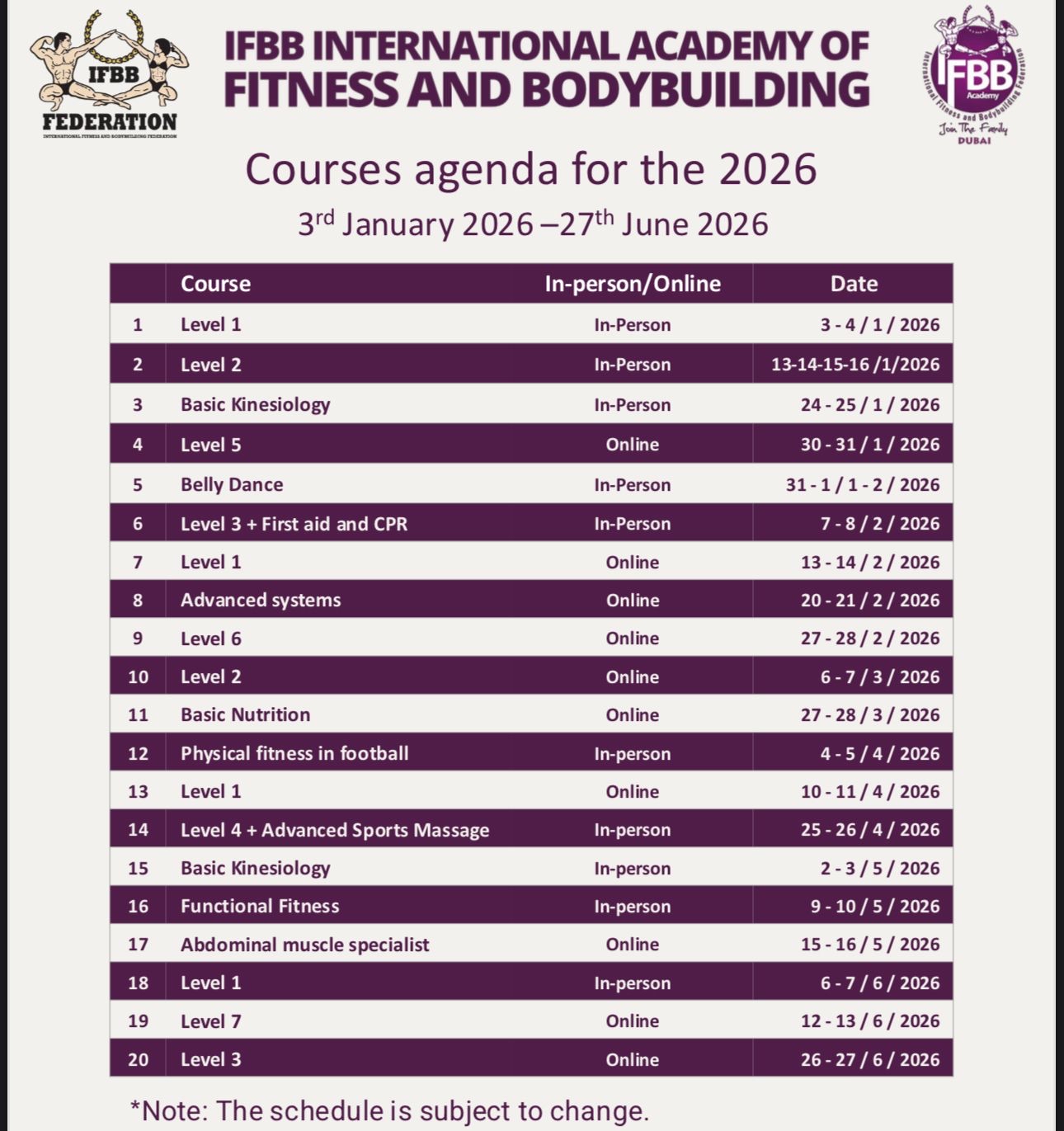 | Level 3 | In-Person (Bahrain) | 1-2/12/2023 |
