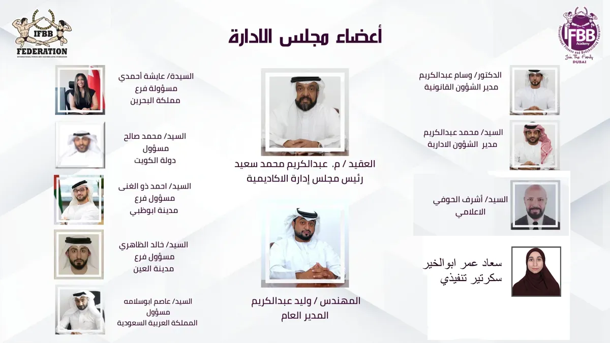 Since the first day of its accreditation by the International Federation of Body Building and Fitness, the IFBB International Academy for Body Building and Fitness has set its sights on the task of developing, refining, and qualifying coaches and all those interested and lovers of bodybuilding and fitness in the Middle East in the form and level that suits them and the size of their ambitions in the field of This beautiful and fun sport that shows the beauty and muscular coordination of the human body.